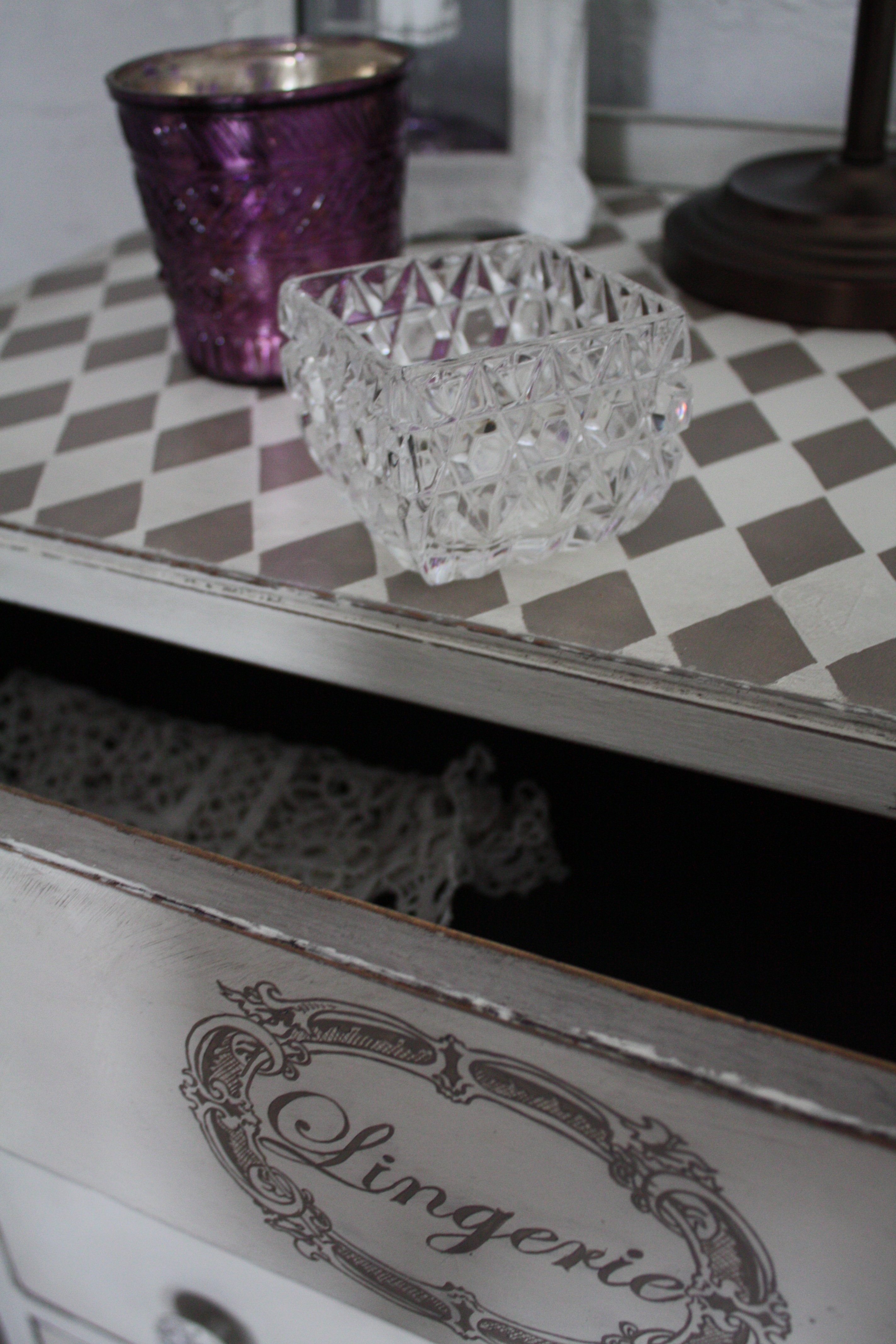 This 1960 Vintage piece where hand painted with mixture of Annie Sloan Chalk Paints – French Linen and Old white. Decorated with hand painted typography designed by myself. Protected with clear wax, aged with dark wax and heavily distressed. Signed with my Signature.