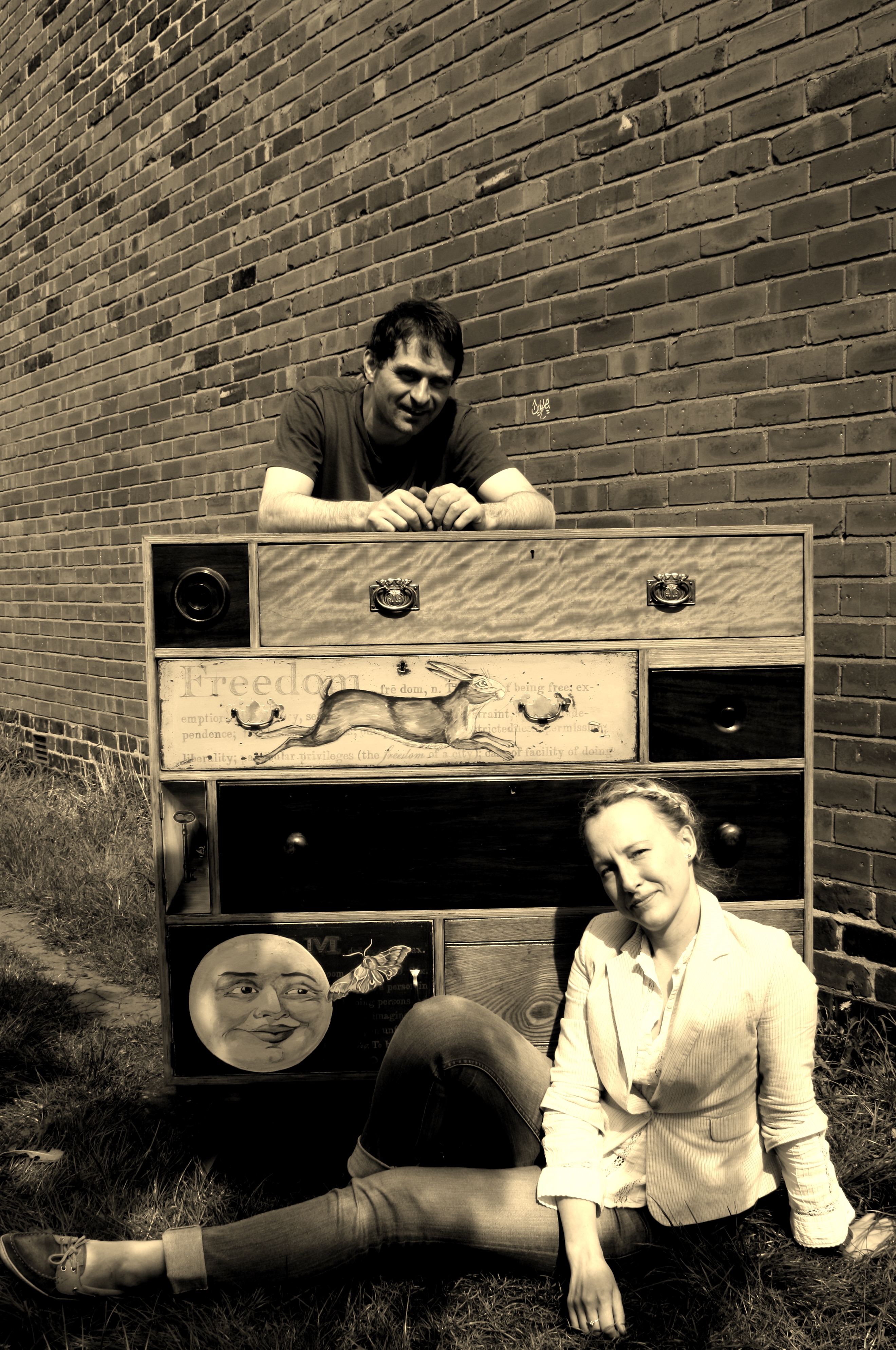 This piece is a collaboration of talents. Christopher Roe, cabinet maker and furniture restorer. Dar'ya Meszkes Artist and Artisan.