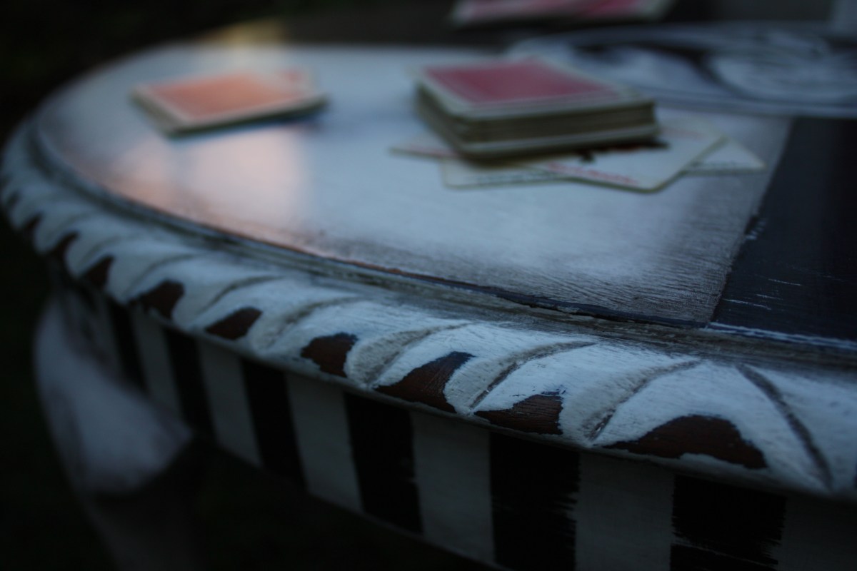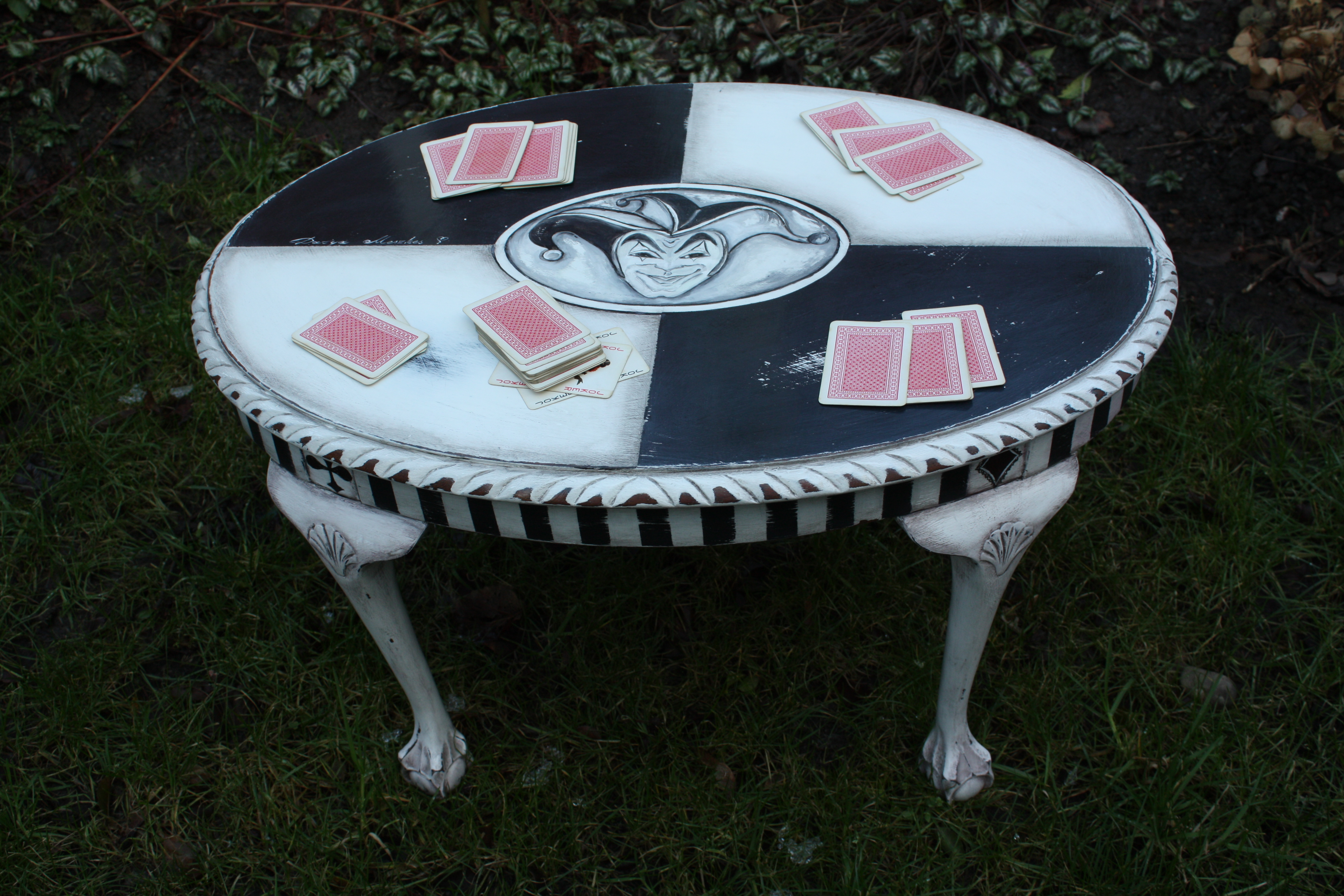 Black JOKER Coffee Table. Antique, Vintage, Boutique Hotel, Display, Card Game Table 1 February 6, 2015March 2, 2015 Written by Darya hand painted Joker Coffee Table Hand painted, hand decorated, protected with varnish. Quality distressed finish. Share this: Click to share on Facebook (Opens in new window) Facebook Click to share on LinkedIn (Opens in new window) LinkedIn Click to share on Pinterest (Opens in new window) Pinterest Click to share on X (Opens in new window) X Click to share on Tumblr (Opens in new window) Tumblr Like Loading... Related